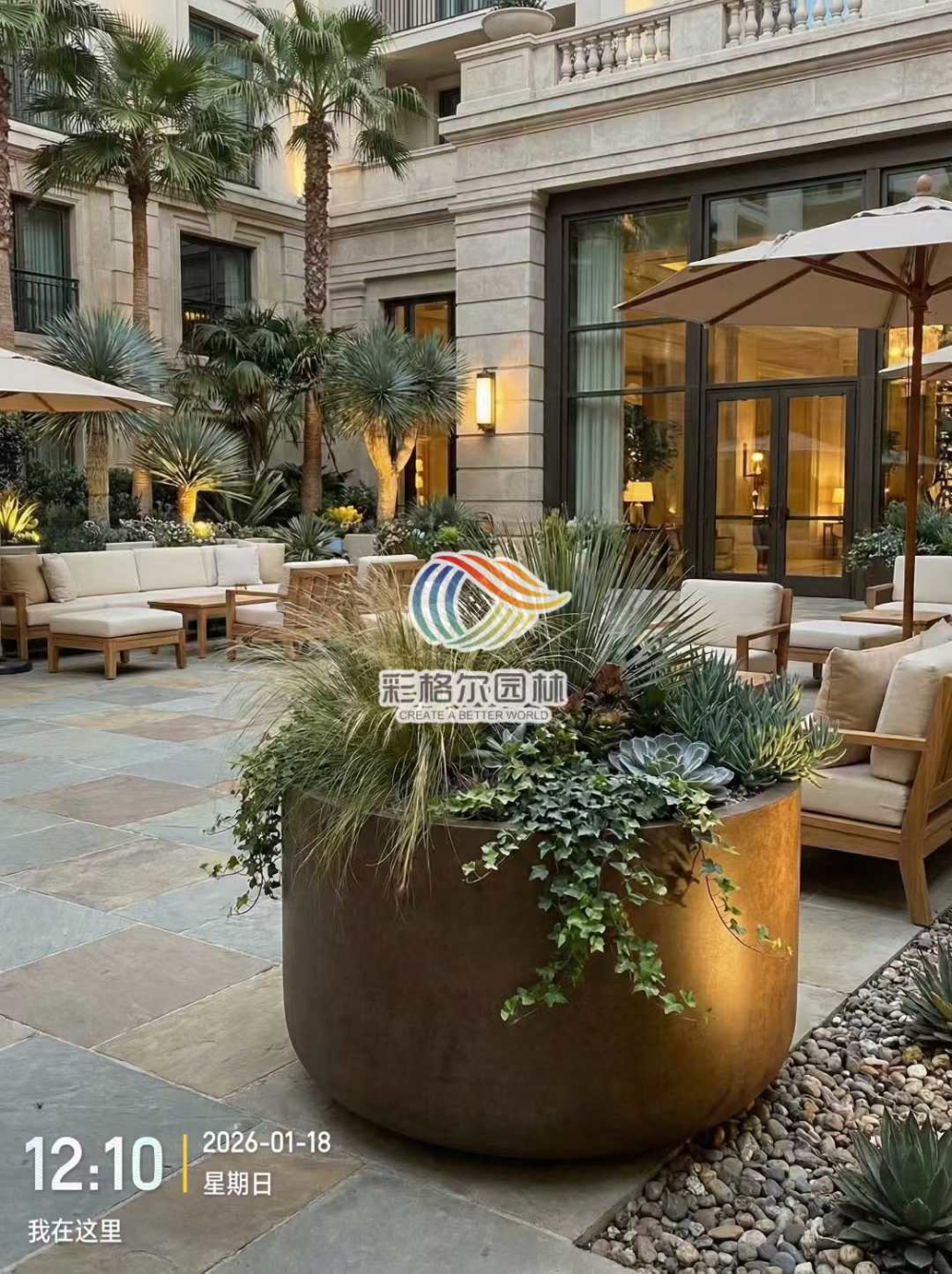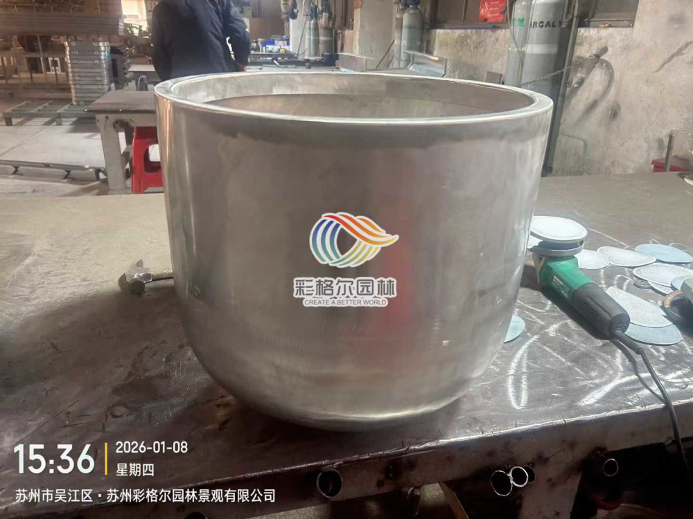 304不锈钢材质,圆形双曲面花池,转印纹理效果