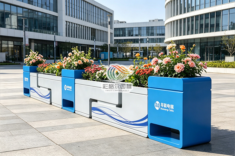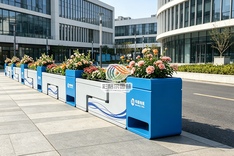 从路人视角看厂区:蓝白撞色花箱,如何让第一印象瞬间加分?