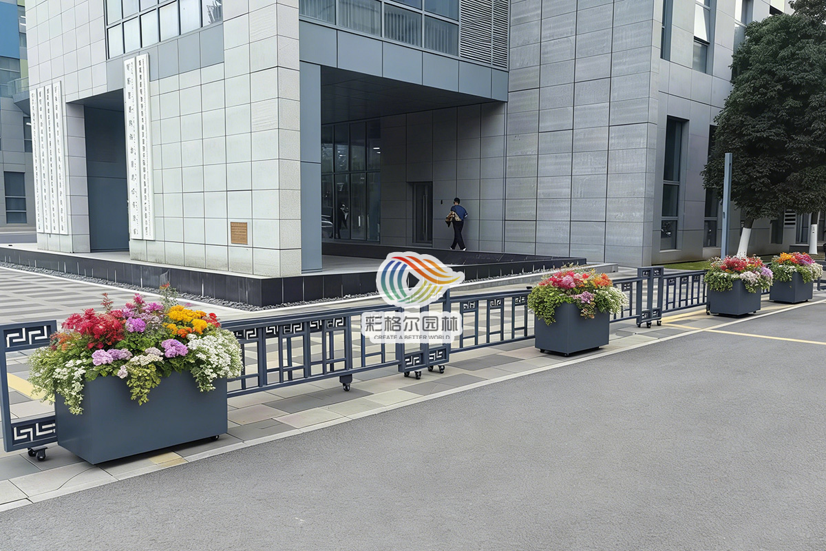 该产品集成花箱与护栏双重功能,在实现安全防护、区域划分的同时,可在花箱内栽种耐候绿植,软化硬质空间,提升场景绿化品质与视觉美感,兼顾实用性与景观性。
