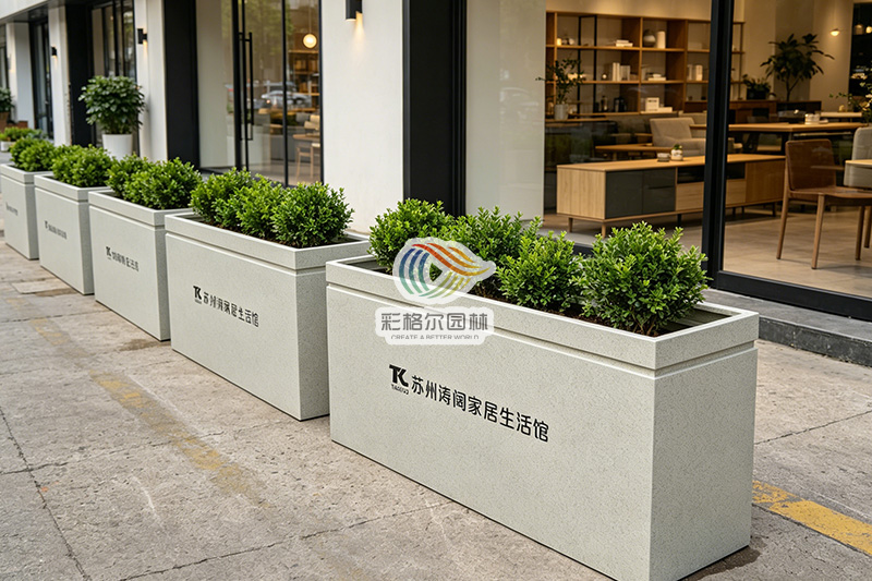 真石漆户外花箱:商业外摆的质感之选,隔离造景二合一