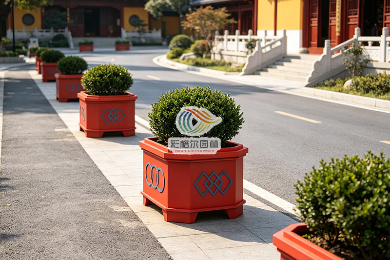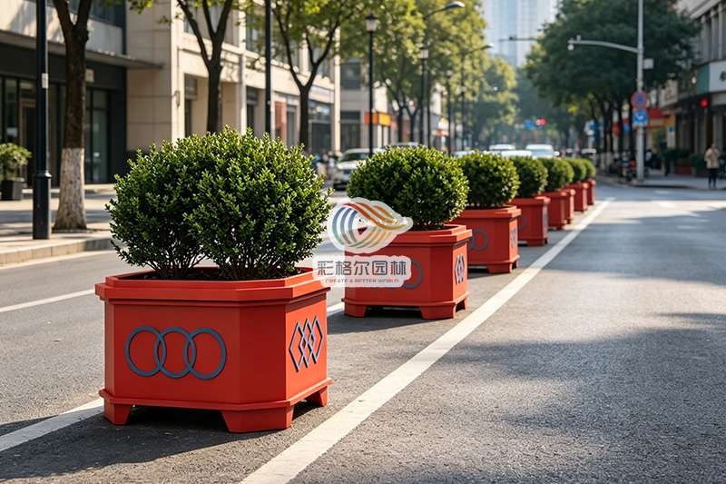 它的价值,不止于 “防撞”。作为一款可移动种植箱,它底部可加装万向轮,轻松实现场景切换:在厂区,它可以连成一排作为隔离带,分隔车流与人流,规范厂区通行秩序;在商业广场,它可以组合成景观组团,为公共空间打造层次丰富的绿意角落;在市政绿化场景中,它是灵活的户外花箱,既能盛放时令花卉,也能作为景观树池种植小型乔木,用一抹生机软化硬质路面,让城市的每一处都有绿意相伴。