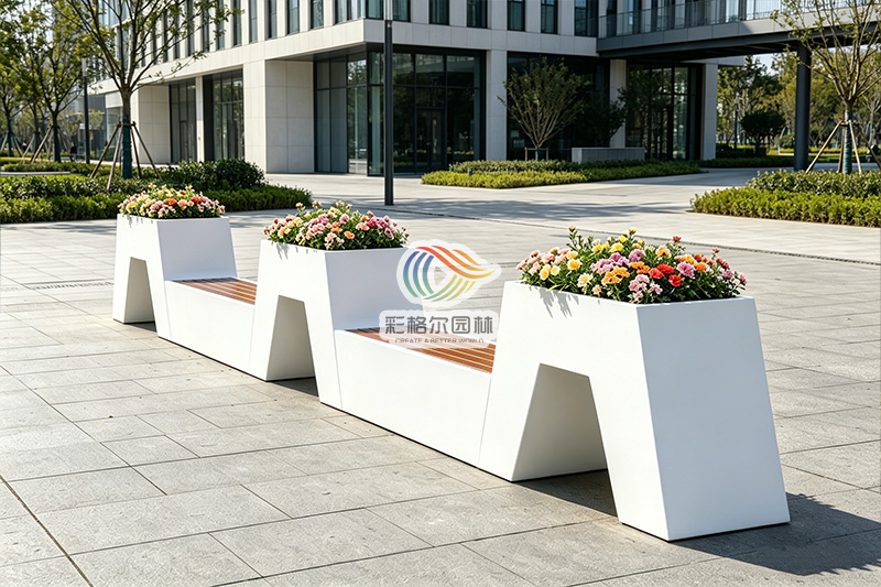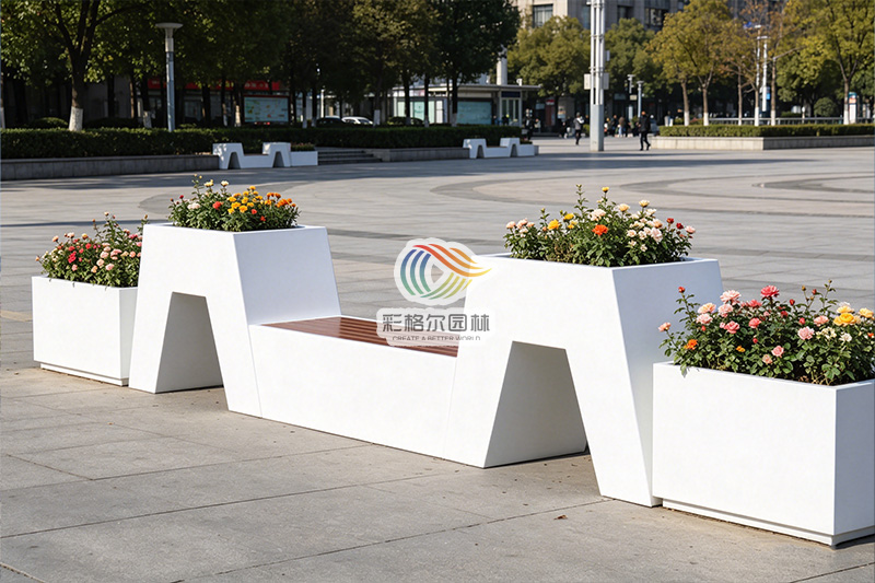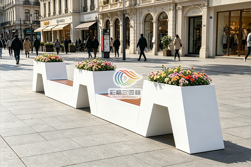 对于景区和商业街来说,这款景区休闲坐凳花箱组合更是提升用户体验的利器。在游客熙攘的步行街,它既是分隔人流的景观节点,也是缓解疲劳的休憩港湾;在景区广场,它既是拍照打卡的网红背景,也是游客歇脚赏景的最佳位置。它以流畅的线条、简约的纯白造型,完美适配欧式商业街、现代景区等多种场景,不抢建筑的风头,却用细节为空间注入了温度与生机。