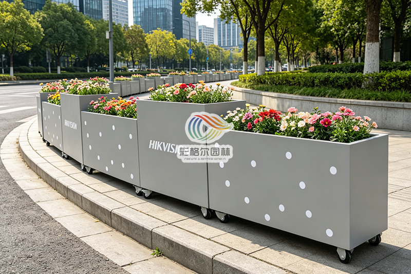 以高低组合设计、万向轮自由移动、双层 PVC 微发泡内衬为核心卖点,完美适配市政道路、商业广场、园区步道等各类场景,是